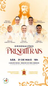 Sua ordenação presbiteral está marcada para 31 de maio, em uma celebração que reunirá familiares, amigos, padres, seminaristas e fiéis das comunidades por onde passou. Um momento de grande graça para toda a Igreja, que acolhe com gratidão o dom de mais um sacerdote a serviço do Reino.