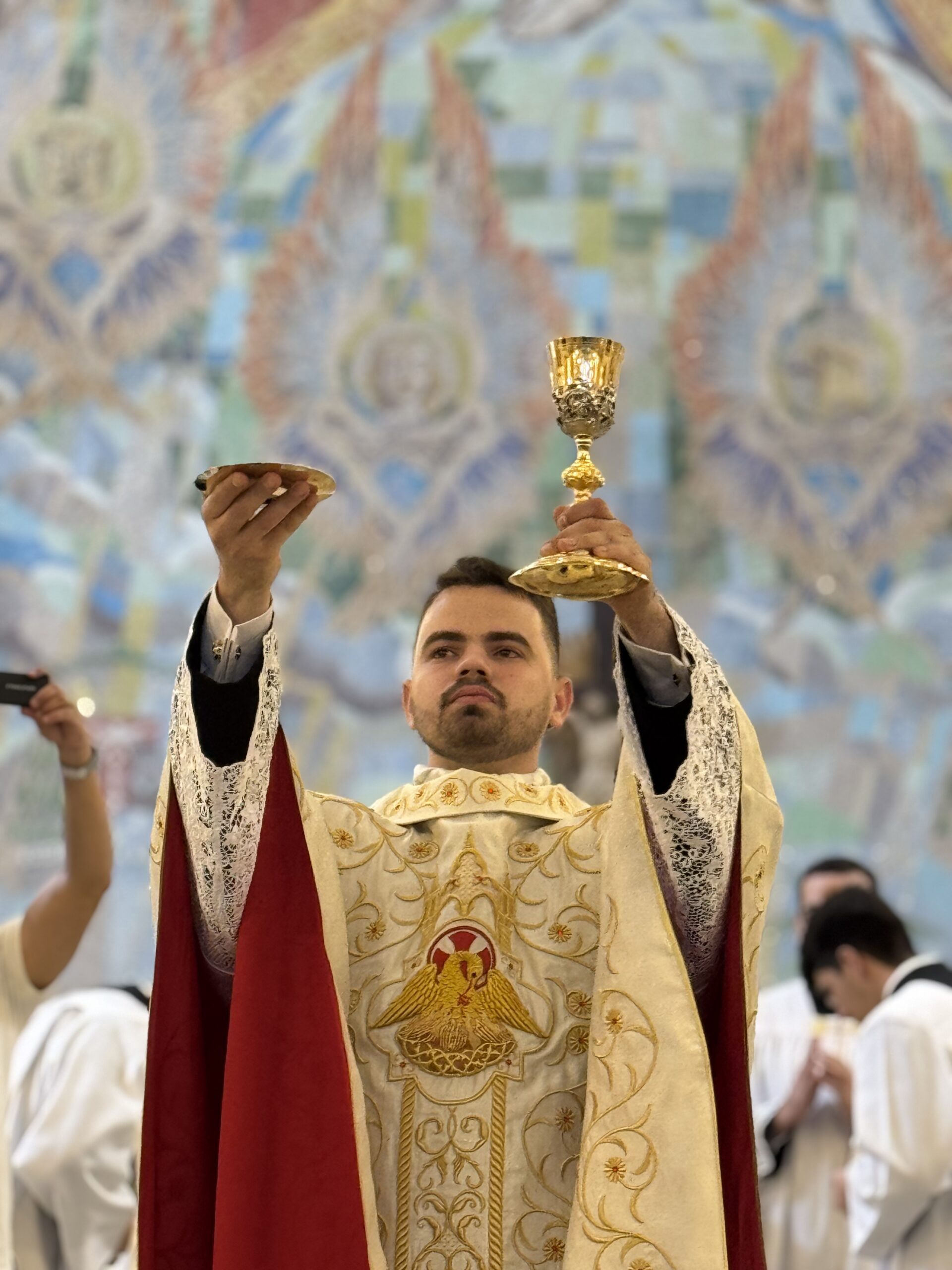 A Catedral Basílica do Senhor Bom Jesus de Cuiabá esteve completamente lotada na noite deste sábado (11) para a acolhida do neo-sacerdote Pedro Henrique, em uma celebração emocionante e já em clima de despedida do arcebispo metropolitano, Dom Mário Antonio. A Santa Missa foi presidida por Dom Mário Antonio da Silva, reunindo fiéis, familiares, amigos e membros do clero arquidiocesano.