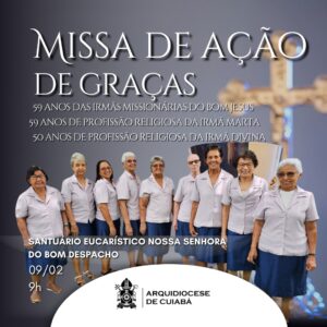 A Congregação das Missionárias do Bom Jesus celebra, no próximo dia 11 de fevereiro, 59 anos de fundação. Criada em 1966 por Dom Orlando Chaves, então arcebispo de Cuiabá, a congregação tem como carisma o compromisso missionário e evangelizador, especialmente junto às comunidades mais necessitadas.