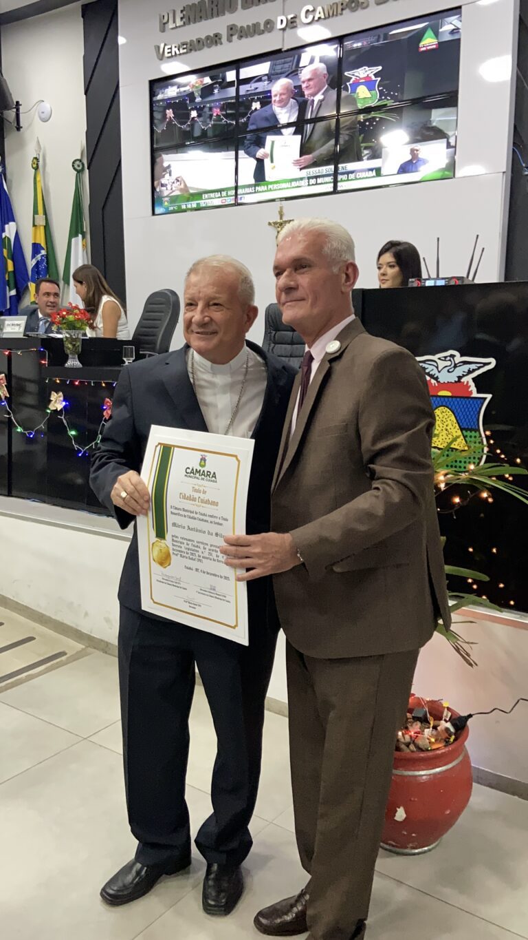 15 de dezembro de 2025 Dom Mário Antonio recebe título de Cidadão Cuiabano em sessão solene na Câmara Municipal O arcebispo metropolitano de Cuiabá, Dom Mário Antonio da Silva, recebeu na noite desta segunda-feira (15) o título de Cidadão Cuiabano, concedido pela Câmara