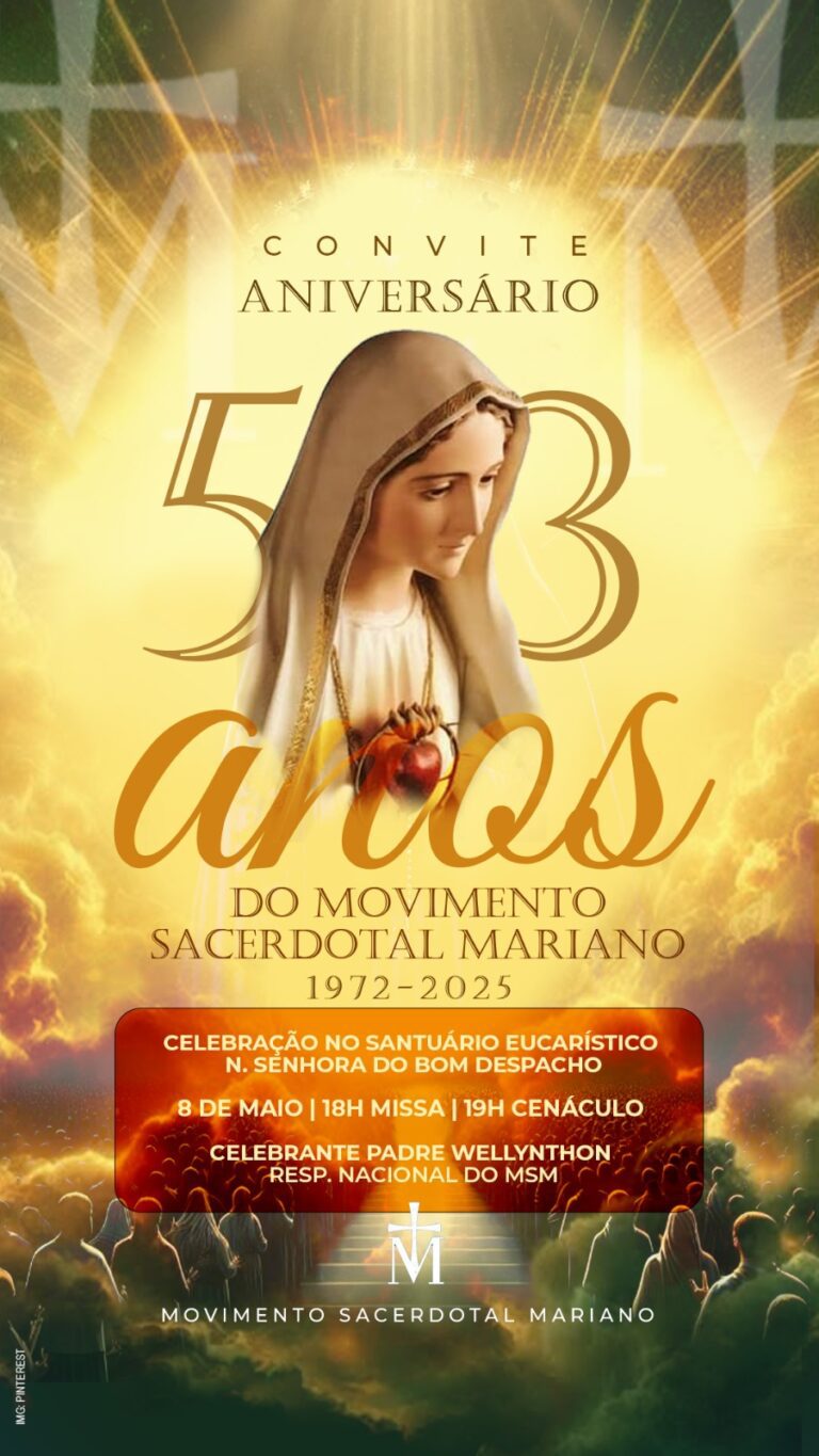 6 de maio de 2025 Movimento Sacerdotal Mariano celebra 53 anos com missa e cenáculo O Movimento Sacerdotal Mariano (MSM) celebra 53 anos de fundação com uma programação especial no Santuário Eucarístico Nossa Senhora do Bom Despacho, em Cuiabá.