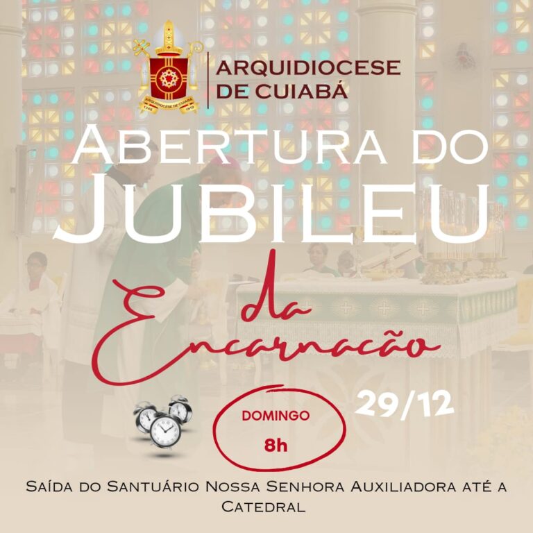 26 de dezembro de 2024 Domingo tem a Abertura do Jubileu da Encarnação na Arquidiocese de Cuiabá A Arquidiocese de Cuiabá se prepara para a Abertura do Jubileu da Encarnação, no próximo domingo (29), dia da Sagrada Família. O Ano Jubilar