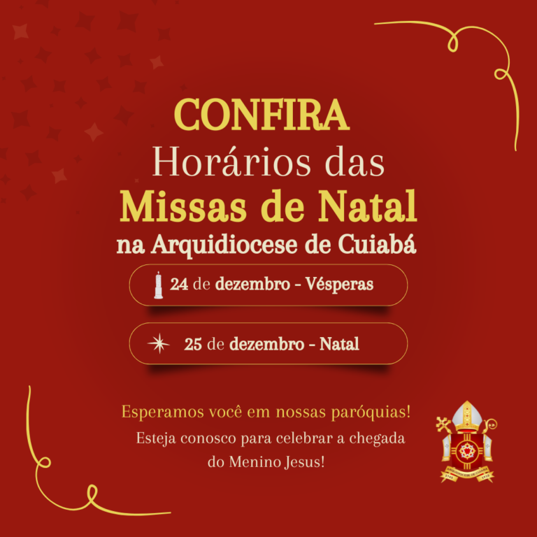 31 de dezembro de 2024 Confira a programação de Ano Novo, na Arquidiocese de Cuiabá A Celebração da Santa Missa é indispensável para nós, católicos. Por isso, trago para você esse compilado de atividades que serão realizadas em nossas