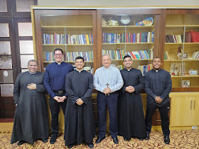 Os diáconos Cauê, Gabriel, Renan, Oscar e Jefferson, estiveram reunidos, nesta manhã (17), com o arcebispo metropolitano da Arquidiocese de Cuiabá, dom Mário Antonio. O encontro foi realizado para alinhamento das atividades que antecedem a Ordenação Presbiteral dos futuros padres e para organização pastoral dos diáconos, que serão incardinados, no próximo dia 31 de maio de 2025, no Rincão do Meu Senhor, em Várzea Grande.