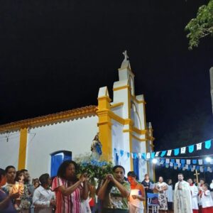 Após a celebração, as crianças da comunidade realizaram a coroação de Nossa Senhora, seguida por uma procissão luminosa pelas ruas do distrito. Durante o percurso, o pároco Frei Dimas abençoou as casas, enquanto os fiéis rezavam e cantavam em unidade. A procissão levou esperança e consolo a enfermos, crianças e àqueles impossibilitados de participar da missa.