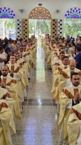 A Missa da Ceia do Senhor recorda a instituição da Eucaristia e do sacerdócio ministerial por Jesus Cristo, na última ceia com seus apóstolos. Nesta manhã, às 9h, Dom Mário e mais de 80 padres da Arquidiocese de Cuiabá, realizaram a renovação das Promessas Sacerdotais, em comunhão com padres do Mundo Inteiro.