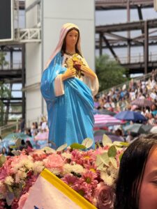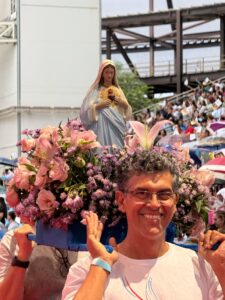 “A Ivana me pediu carona e, até então, eu não tinha ninguém para levar o andor comigo. Então disse a ela: “eu te dou carona, mas você vai carregar o andor comigo”, comentou Sônia. “A emoção fica à flor da pele. A gente vem agradecer, porque, mesmo rezando, não deixamos de ter cruzes, mas temos as forças de Nossa Senhora para nos ajudar a carregar”.