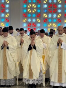 Um dos momentos de destaque na celebração foi a renovação das promessas sacerdotais. Diante do povo de Deus, os presbíteros reafirmaram o compromisso assumido no dia da ordenação: viver em comunhão com o bispo, servir com fidelidade e renovar diariamente o ardor missionário. Dom Mário ressaltou que este gesto não é apenas memória, mas atualização da graça e compromisso renovado diante dos desafios do tempo presente.