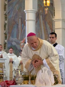 Outro ponto central da Missa do Crisma foi a bênção dos santos óleos: o Óleo dos Catecúmenos, utilizado na preparação para o Batismo; o Óleo dos Enfermos, sinal da presença misericordiosa de Deus no sofrimento; e o Santo Crisma, empregado nos sacramentos do Batismo, Crisma e Ordem. Esses sinais expressam a ação concreta de Deus que fortalece, cura e consagra o seu povo.