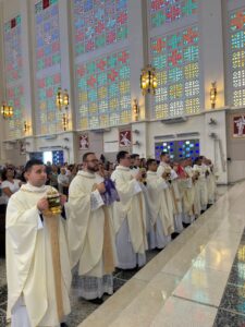 A Arquidiocese de Cuiabá celebrou, na manhã da Quinta-feira Santa, a tradicional Missa do Crisma, reunindo o clero, religiosos, seminaristas e fiéis leigos em torno do arcebispo metropolitano, Dom Mário Antonio. A celebração, uma das mais significativas do calendário litúrgico, foi marcada pela renovação das promessas sacerdotais e pela bênção dos santos óleos, que serão utilizados ao longo de todo o ano nos sacramentos.