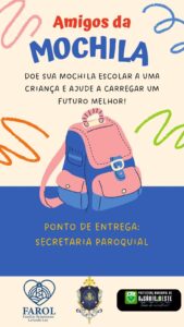 A Paróquia Nossa Senhora do Rosário, em Rosário Oeste, em parceria com a FAROL (Famílias Rosarienses Levando Luz) e com a Prefeitura Municipal, conseguiu realizar um projeto voltado o incentivo a educação no município. As crianças de Rosário Oeste, receberam hoje (29), mochilas novas e usadas, em bom estado de conservação, graças a essa iniciativa que mobilizou a comunidade local e paroquianos de várias cidades de Mato Grosso.