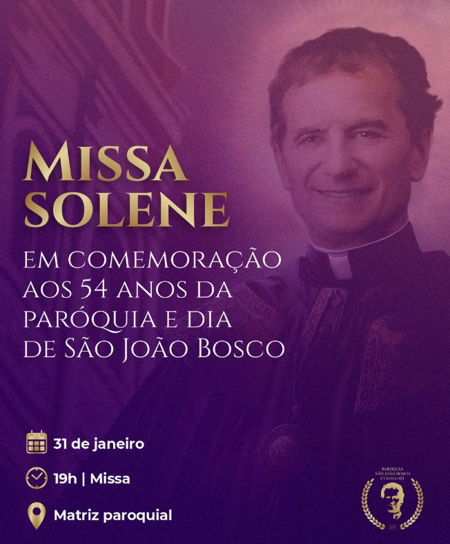 Último dia de janeiro (31), e celebramos a memória de São João Bosco, um dos maiores educadores e evangelizadores da juventude. Fundador da Congregação Salesiana, Dom Bosco dedicou sua vida à formação de jovens, especialmente aos mais pobres, oferecendo-lhes educação, abrigo e uma espiritualidade baseada na alegria e no trabalho. Em Cuiabá, a Paróquia São […]