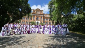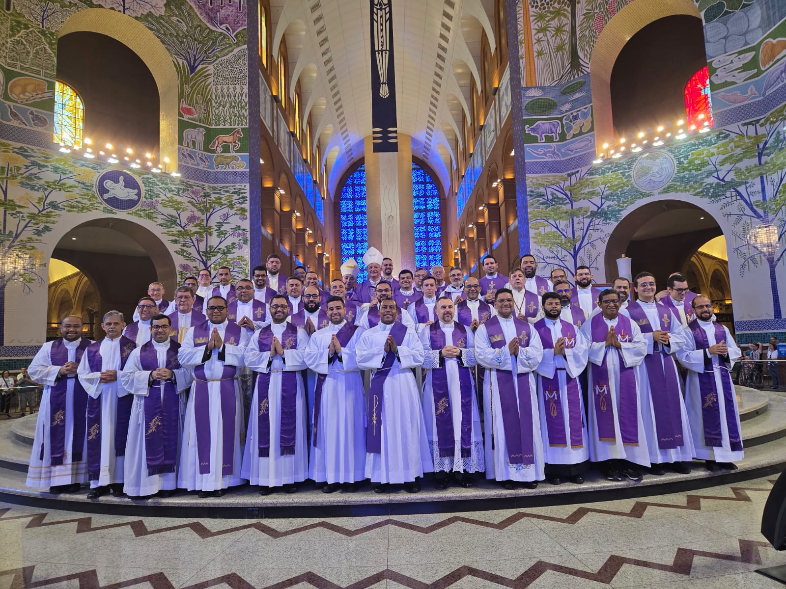 A Santa Missa de encerramento do Retiro Anual do Clero da Arquidiocese de Cuiabá, foi realizada nesta manhã (28), no Santuário Nacional de Aparecida-SP. Desde segunda-feira (24), mais de 50 padres da Arquidiocese estiveram retirados na Pousada Bom Jesus, em Aparecida – SP, e participaram de formações que aprofundou a formação humana e espiritual de nossos sacerdotes.
