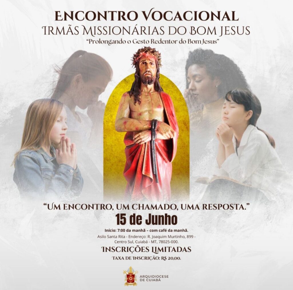 Está chegando o Encontro Vocacional das Irmãs Missionárias do Bom Jesus! Um dia especial de escuta, oração e discernimento. Exclusivo para jovens do sexo feminino. Vagas limitadas! Inscrições através do link: https://forms.gle/zEQ6xttFaBEz6PyUA