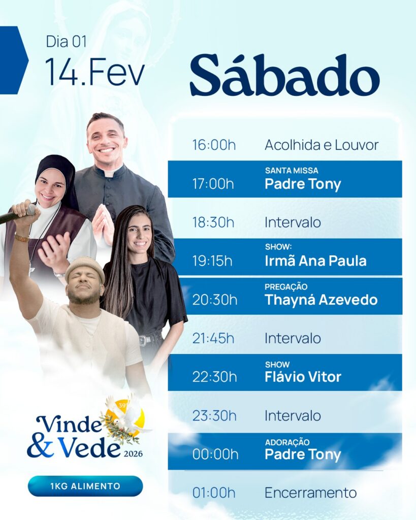 A Arquidiocese de Cuiabá já se prepara para a realização da 39ª edição do Vinde e Vede. Em 2026, um dos maiores eventos de evangelização do Centro-Oeste, vai reunir os maiores nomes da música católica, na Arena Pantanal. O Vinde e Vede começa no dia 14 de fevereiro de 2026 e segue com programação diversificada, […]